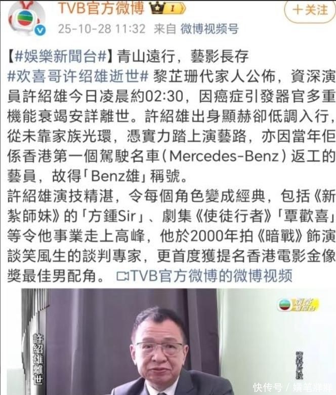 10. 就在人们尚未从许绍雄逝世的伤感中走出之际,又一位演艺界人士悄然告别了人世。
