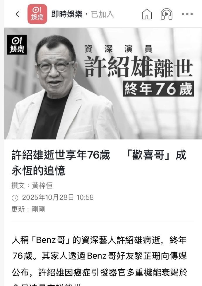 4. 据官方披露,许绍雄因罹患癌症医治无效而辞世,这一病因也成为夺走他生命的最终原因。